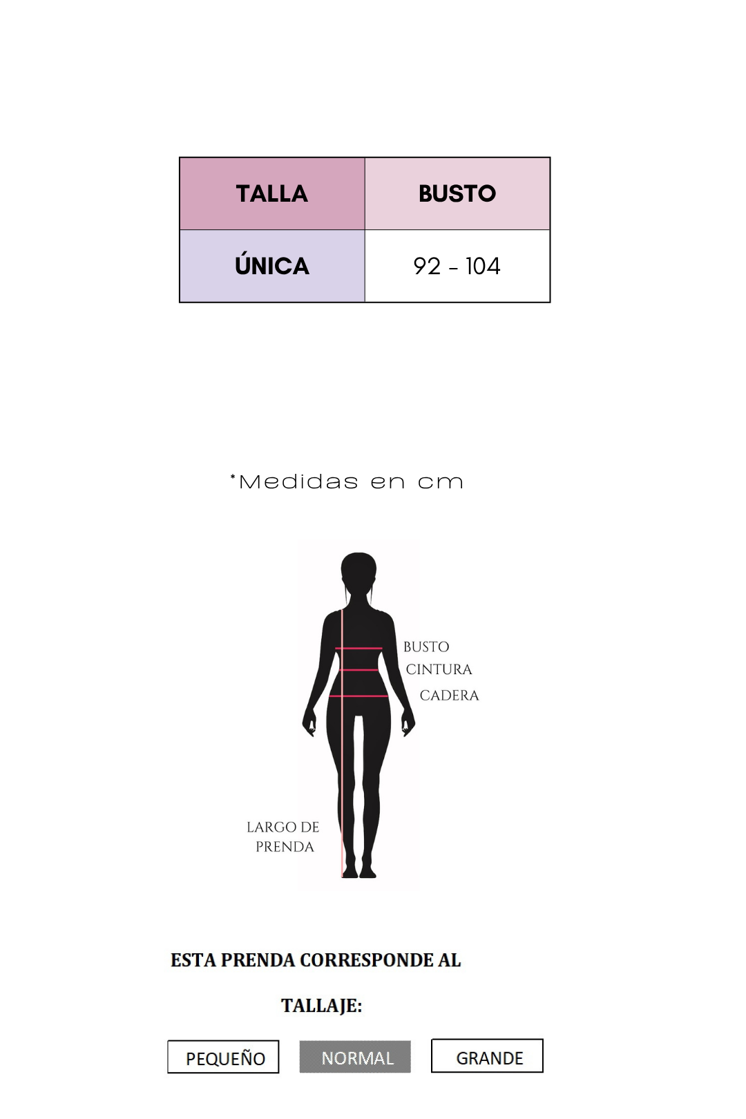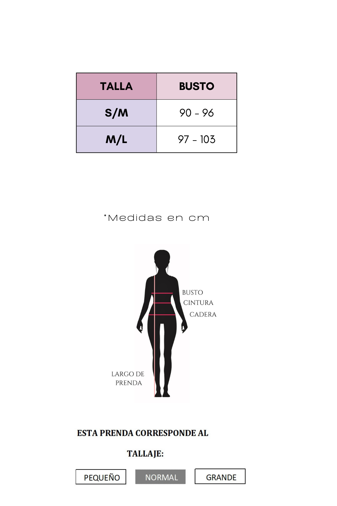 | TALLA | BUSTO | CINTURA |